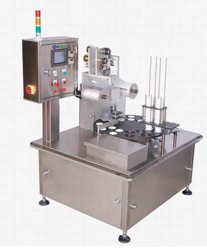 BG系列圓盤(pán)機(jī)功能齊全之最小型全自動(dòng)化機(jī)種,佔(zhàn)用空間小。落杯→無(wú)杯檢出→充填→電眼校正封膜位置→印字→封口&杯蓋裁切→成品整列排出一貫作業(yè)。傳統(tǒng)式操作面板,簡(jiǎn)單易懂。封口模獨(dú)立溫控回授控制。電眼自動(dòng)追蹤校正封口位置,薄膜印刷對(duì)位精確。全機(jī)採(cǎi)用不銹鋼及鋁合金制作,堅(jiān)固平穩(wěn),永不生銹。充填定量精確,儲(chǔ)料桶液位控制自動(dòng)供料。CIP自動(dòng)清洗料桶及充填管路。全部管路符合食品級(jí)衛(wèi)生規(guī)范。無(wú)杯檢出自動(dòng)停機(jī),補(bǔ)入自動(dòng)啟動(dòng)。成品自動(dòng)整列輸出。
